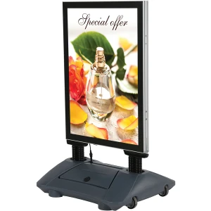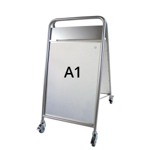 Expo Sign Lux Gadeskilt med logoplade og hjul, sølv