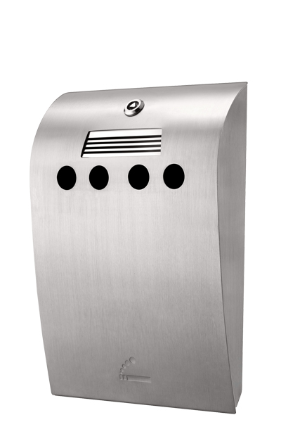 Askebæger i pænt design til montering på væg, dispenser rack eller Multi Stand. Udført i galvaniseret stål, med låsbar buet frontplade i børstet rustfri stål (1105) / pulverlakeret stål (1106). Let at tømme og konstrueret på en måde der reducerer udviklingen af røg. Inkl. nøgle.