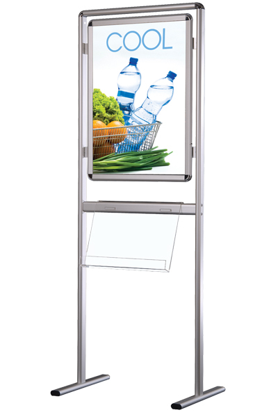 Info-Line Poster Enkelt- eller dobbeltsidet kombineret infotavle og brochurestander i aluminium. A1 Snap-Frame med 32 mm aluprofil, antireflex frontplader og Rondohjørner. 4 mm enkelt- eller dobbelt akryl- hylder til 2 eller 4 stk. A4-brochurer.