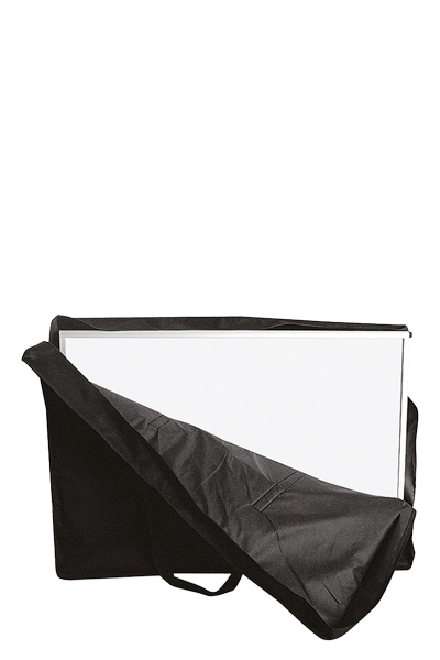 Produceret med ramme af sølv-eloxerede aluminiums-profiler, topplade i trælook og en hvid hylde. Leveres med 3 stk. hvide 3 mm PS paneler, ekskl. print, som let skiftes. Taske købes som tilbehør.